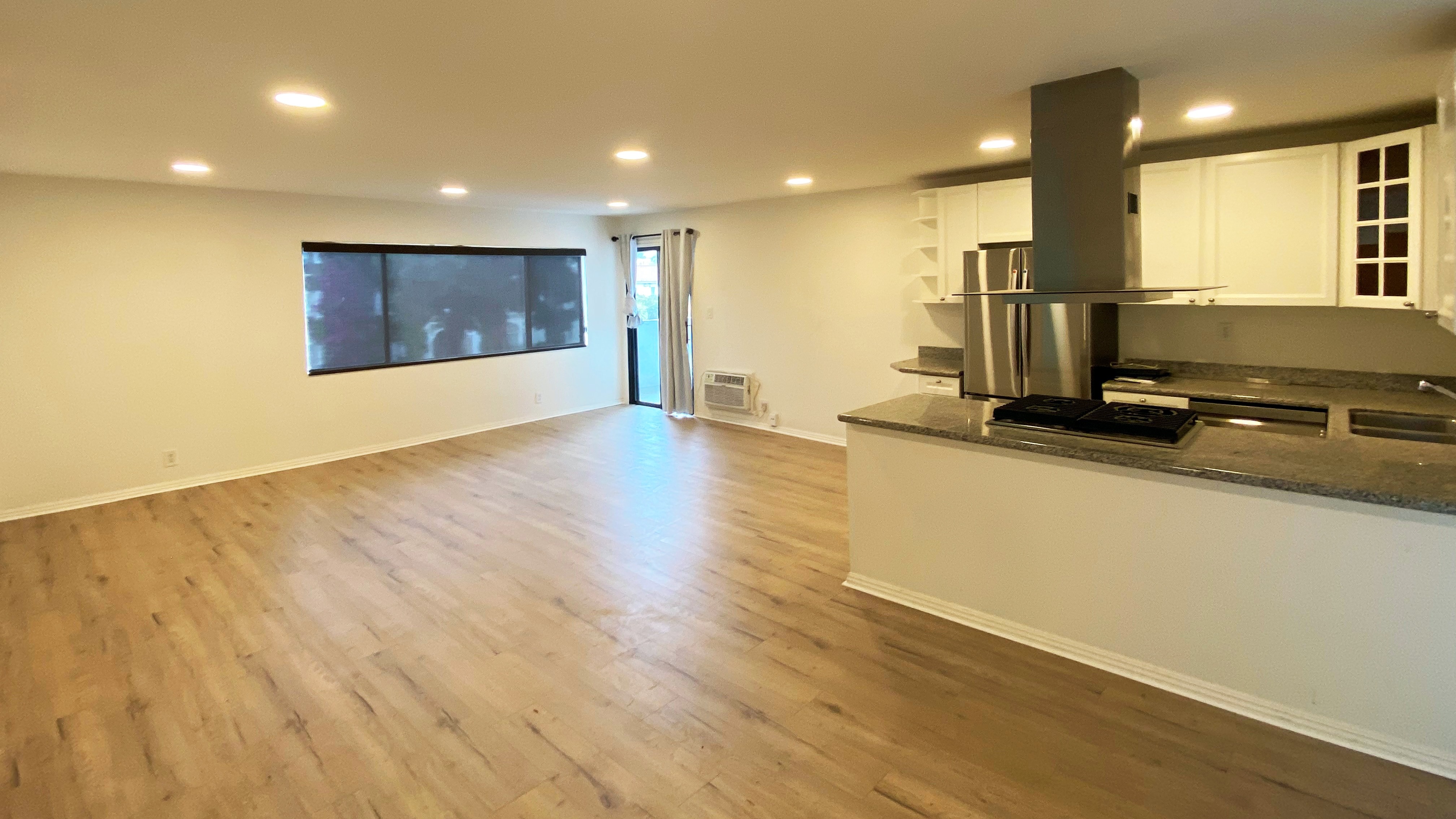 Tucked away along tree lined Arizona Ave., this beautifully upgraded first floor unit features 2 beds, 2 baths, new wood floo